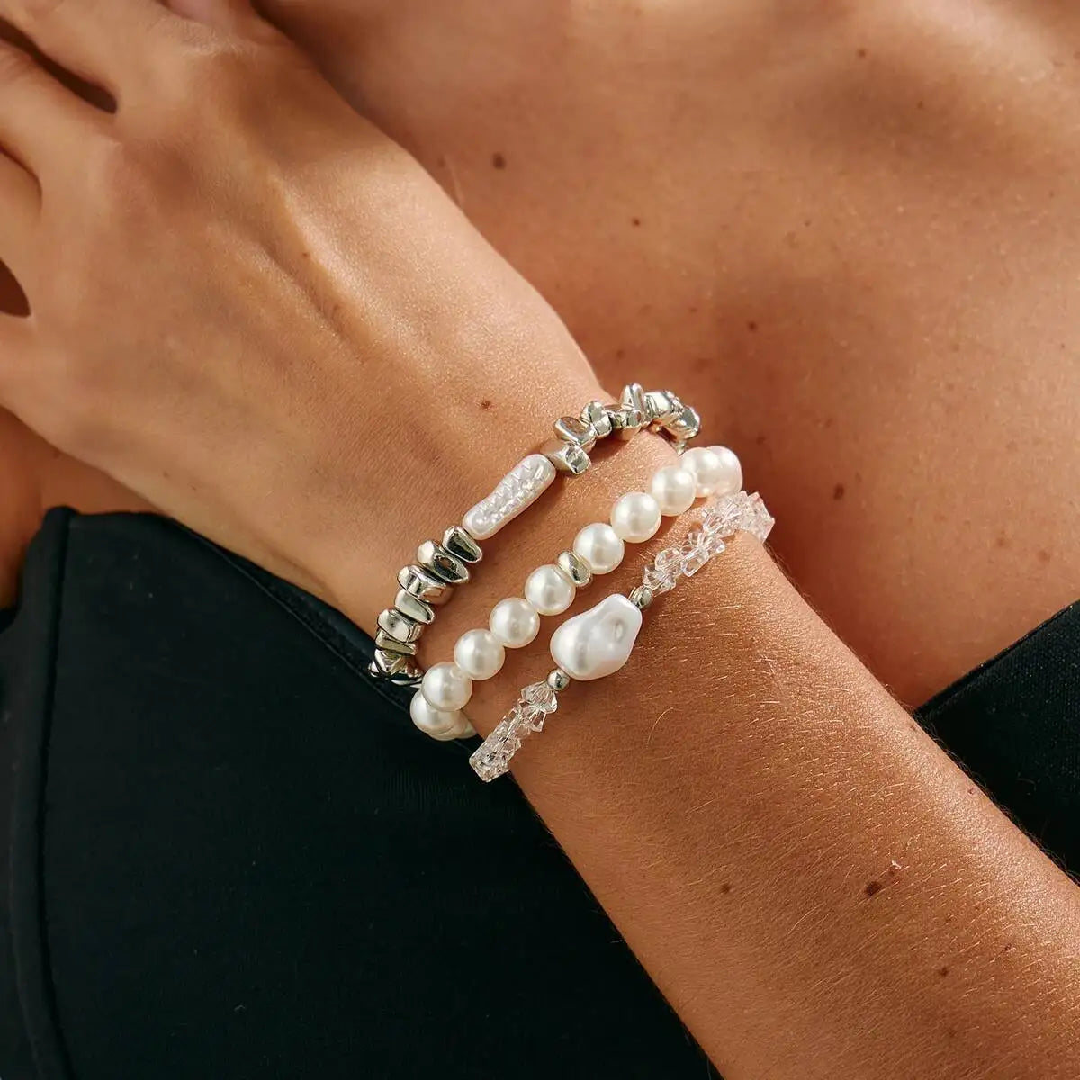 3 Pcs/Set Elegant Baroque Imitation Pearl Bracelets for Women Luxury Stacked Crystal Bead Chain Bracelet Wedding Jewelry