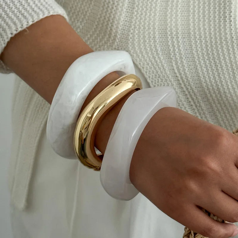 3 Styles Creative Irregular Acrylic Resin Wide Bangle Women Kpop Fashion Stackable Couple Charm Bracelet Steampunk Jewelry