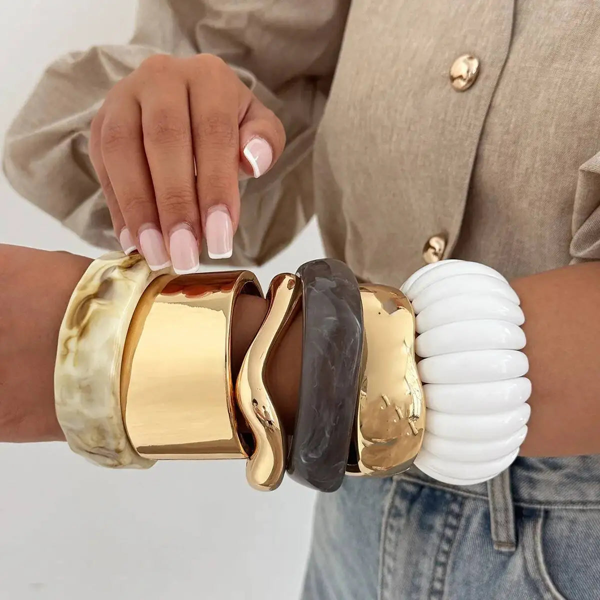 6 Style Exaggerated Irregular Chunky Acrylic Resin Wide Bracelet Trend Creative Stackable Spring Bangle Grunge Rock Jewelry