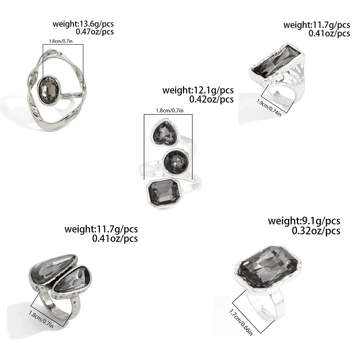 7 Styles Goth Crystal Open Ring for Women 2026 New Trend Geometric Adjustable Knuckle Rings New Year Party Jewelry Gift