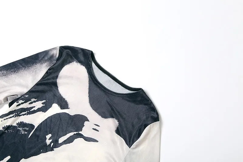 Animal Printed Black Dress Woman Elegant Crew Neck Long Sleeve Maxi Dresses Fall Fashion 2025