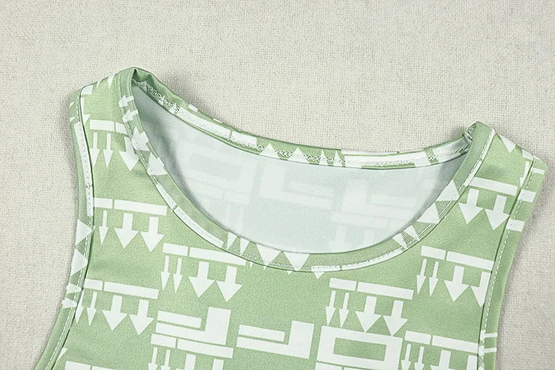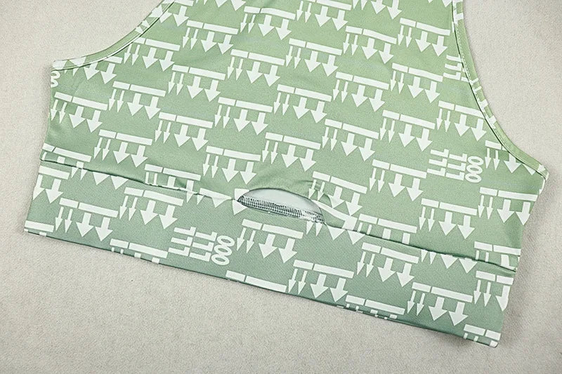 Arrow Print 2 Piece Set Women o-Neck Hollow Tank Tops+Skinny Gradient Long Pants Daily Casual Fashion Sporty Outfits