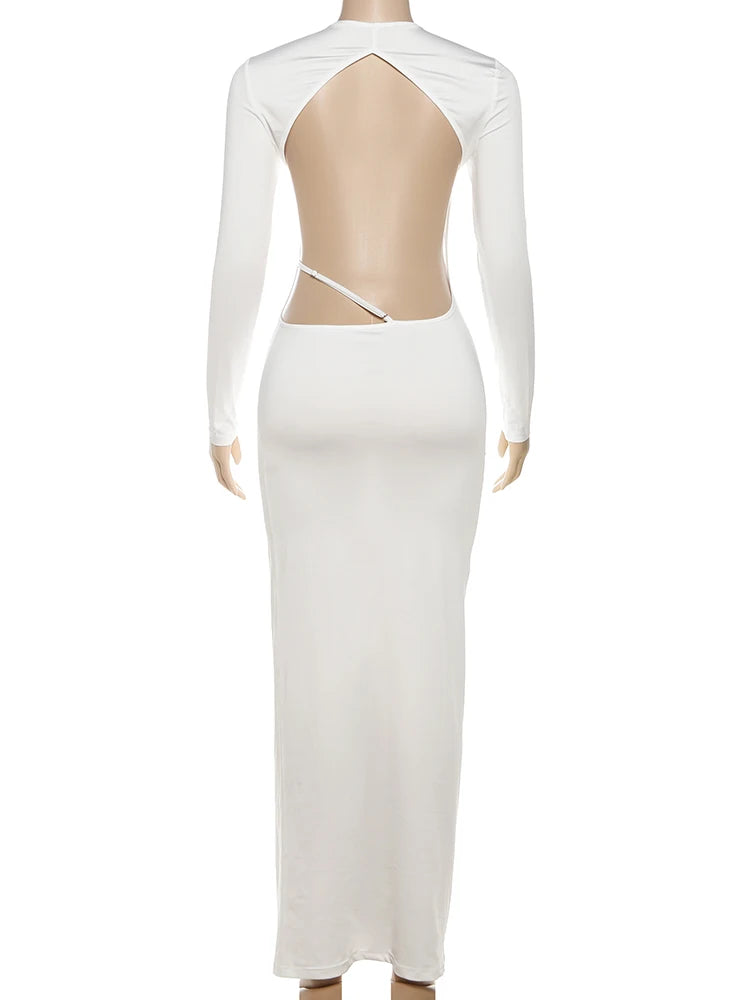 Backless Dress Women Sexy o-Neck Full Sleeve Adjustable Straps Autumn Fashion Skinny Simple Midnight Maxi Bodycon