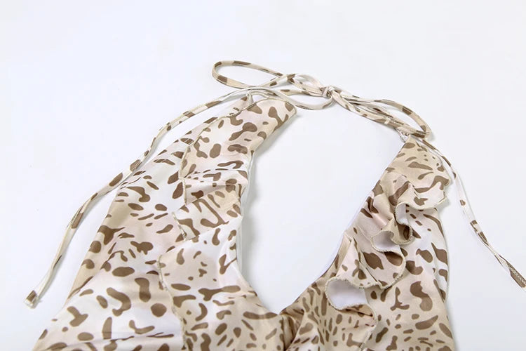 Backless Sexy Party Dress Women Y2K Ruffles Irregular Hem Summer Vacation Leopard Print Midnight Hipster Mini Bodycon