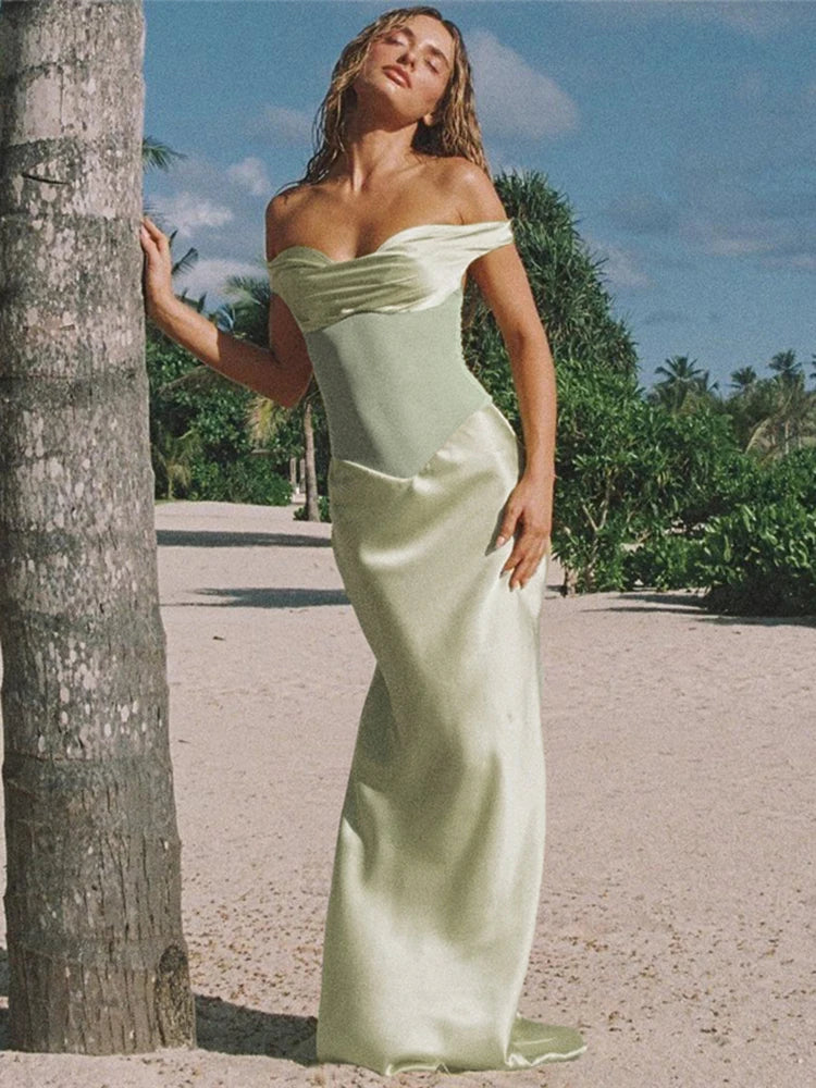 Backless Sexy Party Dress Women Y2K Slash Neck Patchwork Mesh Summer Luxury Satin Birthday Banquet Elegant Vestidos