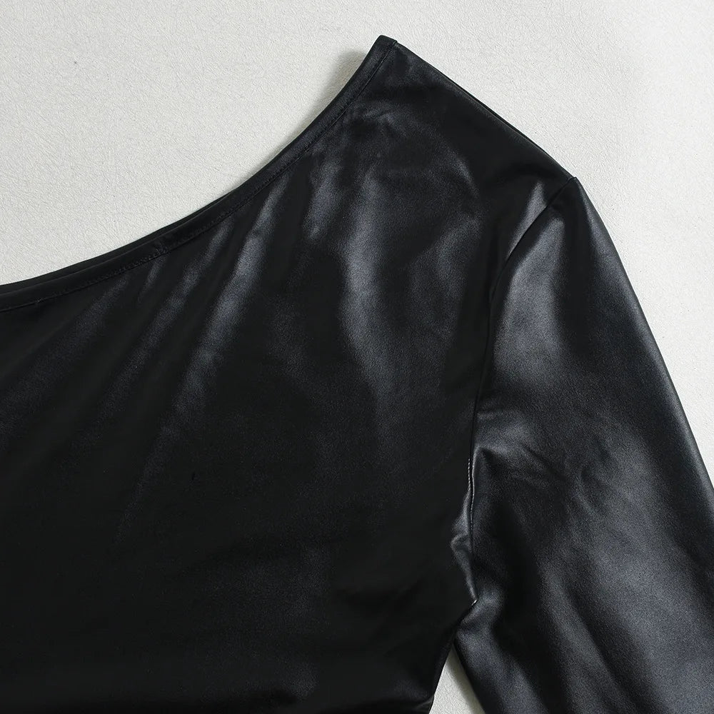 Bandage Hollow Dress Women Irregular Diagonal Collar Backless Single Sleeve Hot Girls Skinny Peach Hip Mini Bodycon