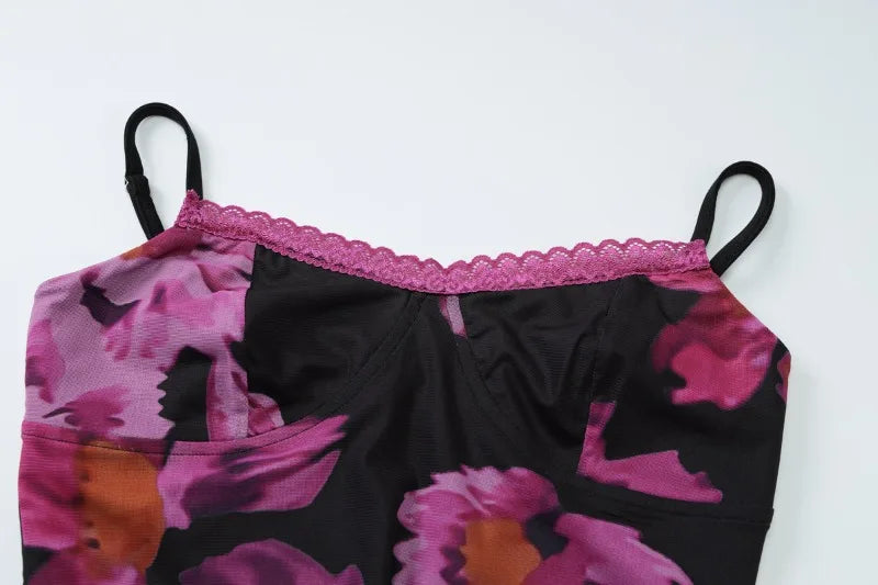 Beautiful Flower Printed Spaghetti Strap Backless Long Dresses Summer Vacation Outfits Woman Dress Elegance