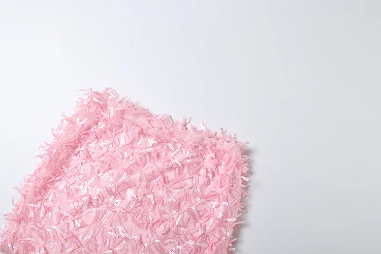 Birthday Party Summer Sequin Tassels 2 Piece Set Women Sexy Swing Collar Tank Tops+Peach Hip Skits Midnight Slim Clubwear