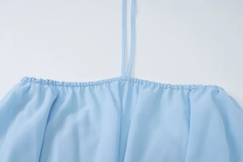 Blue Chiffon Womens Summer Dress Halter Backless Asymmetrical Short Dresses Vacation Outfits Woman Clothing