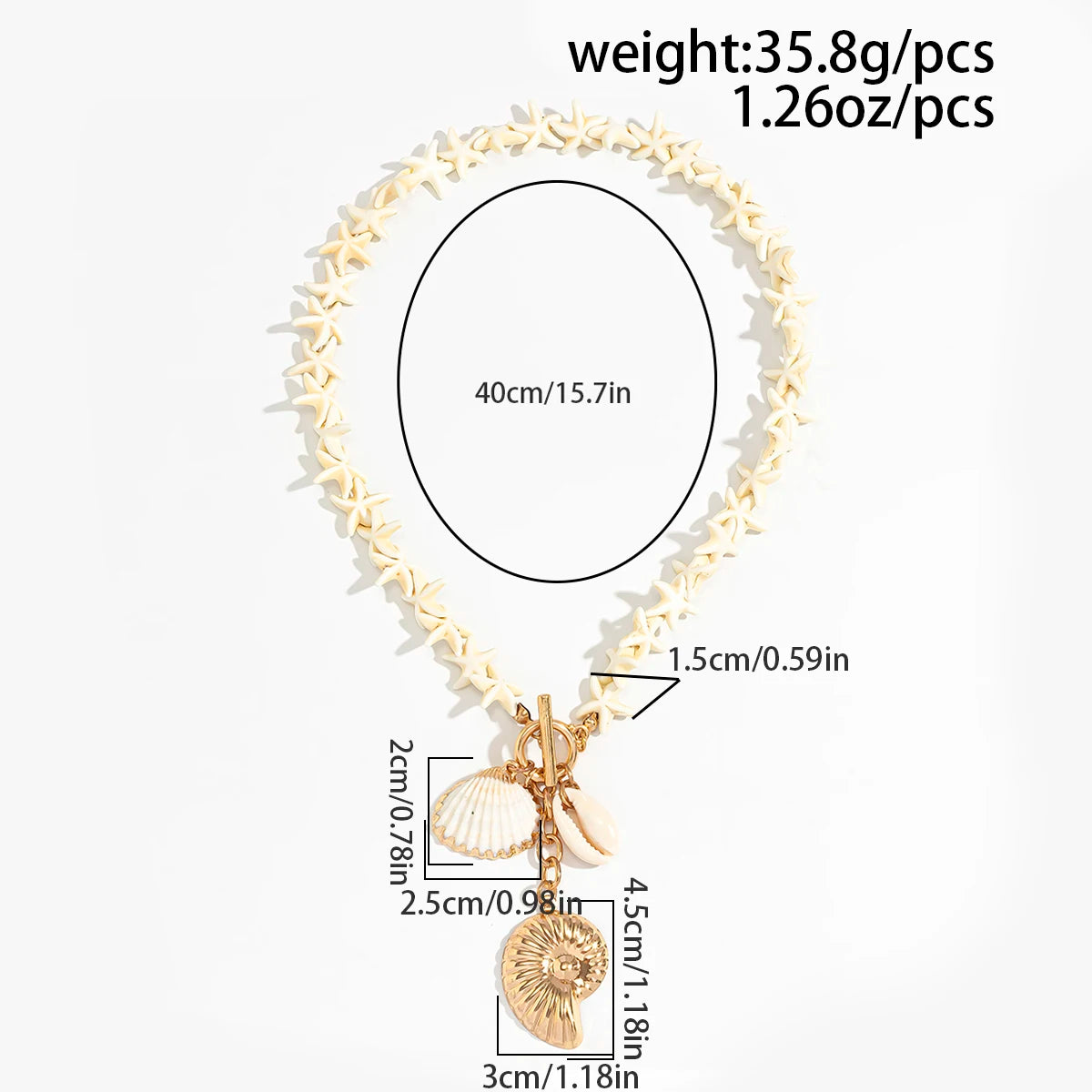 Boho White Starfish Chain Necklace for Women Fashion Statement Elegant Conch Snail Pendant Choker Aesthetic Y2K Jewelry