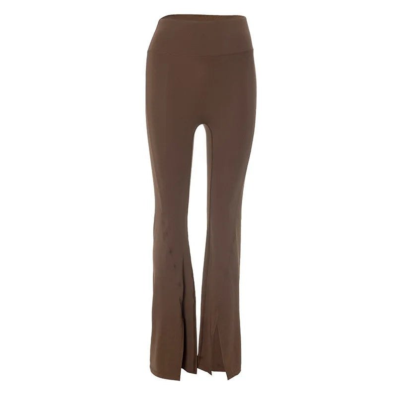 Brown Sweatpants Women Clothes Elastic High Waist Split Flare Pants Casual Sporty Trousers