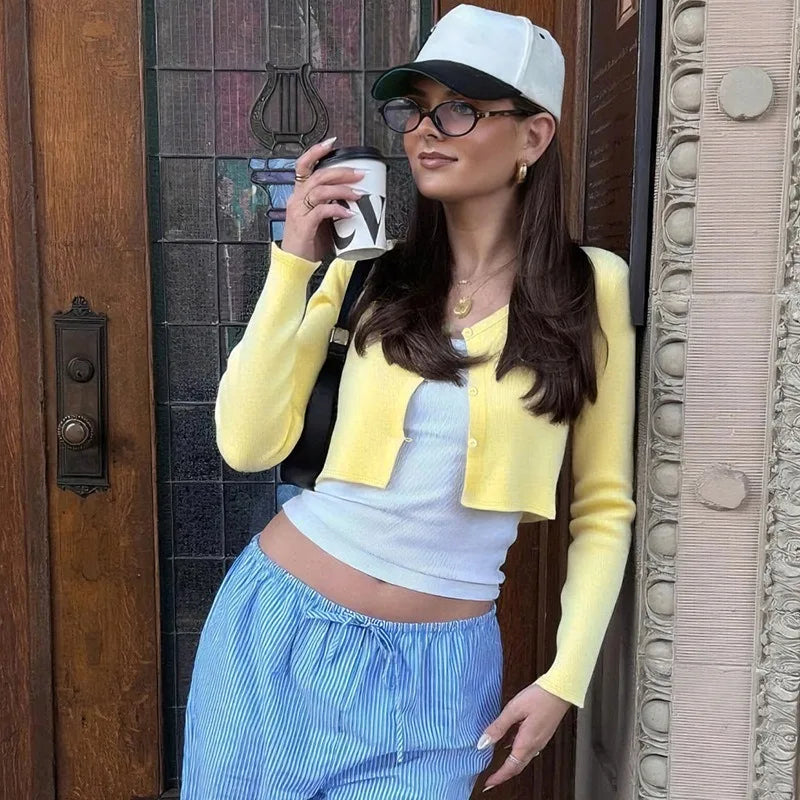 Button Up Cropped Cardigan Woman Fall Clothes 2025 New in Knitwears Long Sleeve Top Sweater Jacket