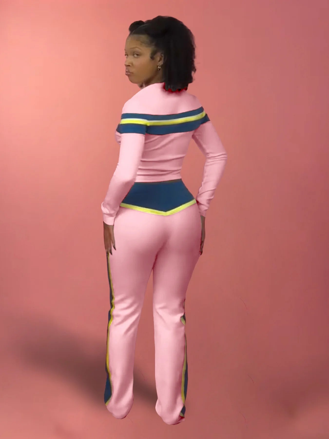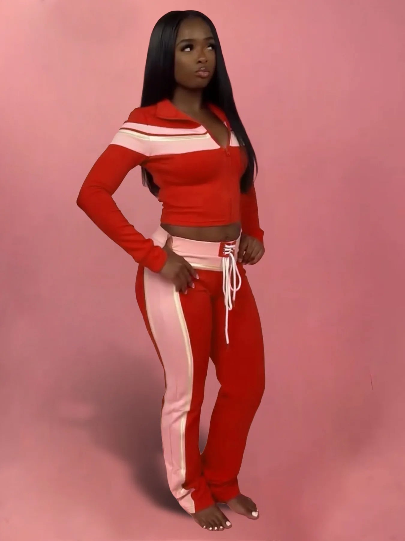 Casual 3 Piece Set Women Patchwork Print Zip Long Sleeve Crop Tops+Bra+Shirring Pants Matching Street Stretch Outfits