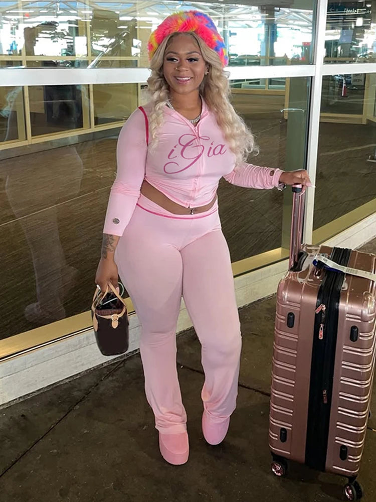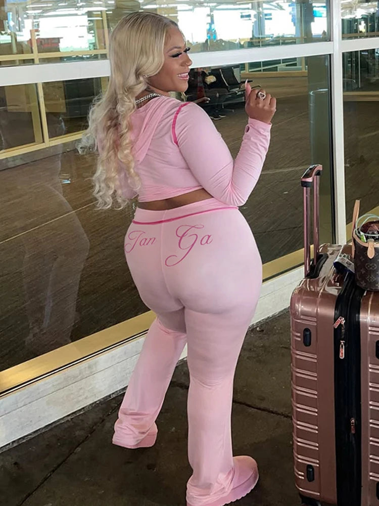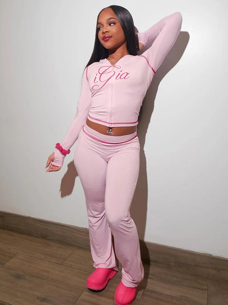 Casual Autumn Trend 2 Piece Set Woman Letter Print Full Sleeve Hooded Zip Jacket+Straight Trousers Street Fashion Outfits