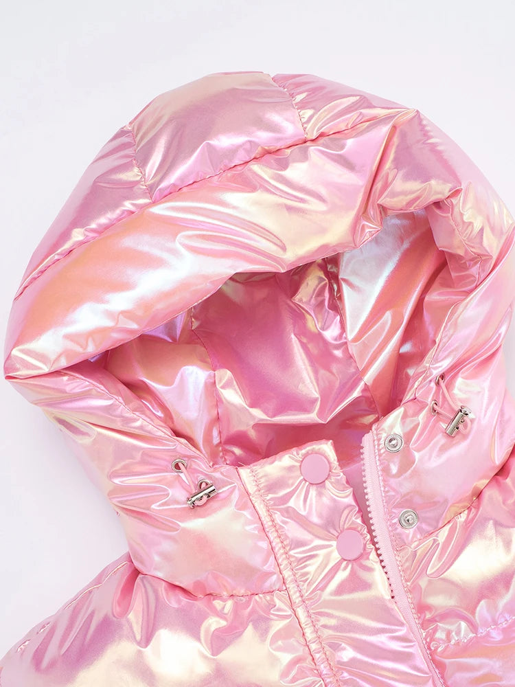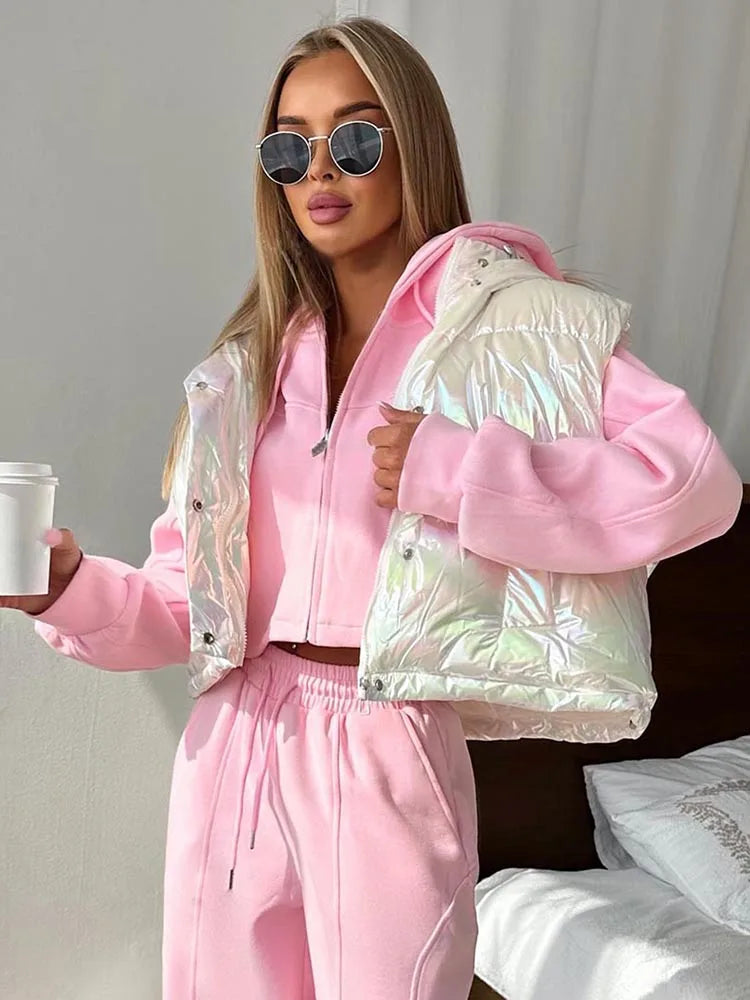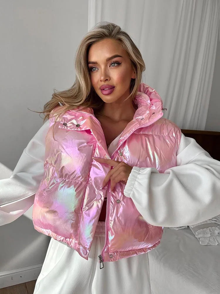 Casual Hooded Zip Crop Tank Tops Women Warm Shirring Hem Metal Buckle Basic Street Quilted Warm Stree Vest Jacket