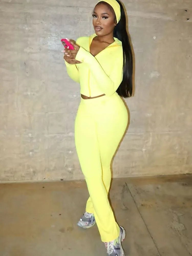 Casual Tracksuit Women 3-Piece Set Sporty Stretch Zip Crop Jacket+Leggings+Headband Fitness Stretch Street Outfits