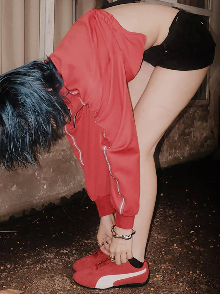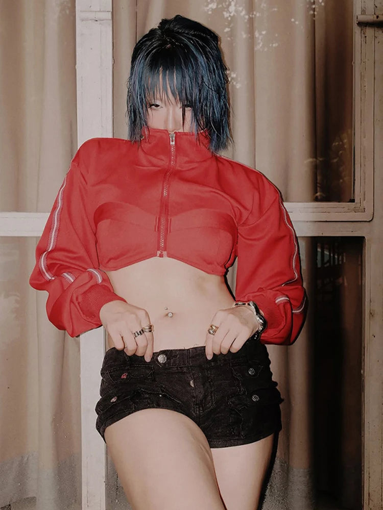 Casuals Patchwork Crop Jacket Women Y2K Hipster Elastic Cuffs Full Sleeve Zip Basic Classics Club Street Autumn Coat