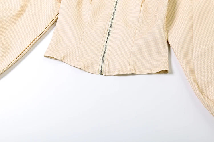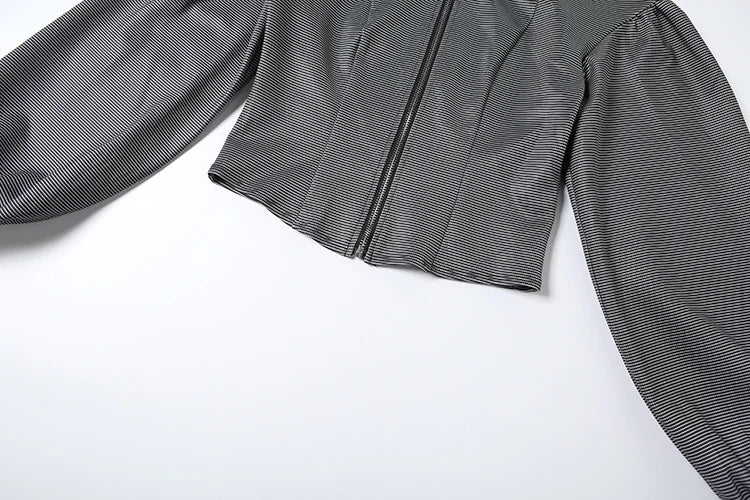 Chic Casual Stripe 2 Piece Set Women Autumn New Style Zipper Cardigan Full Sleeve Jacket+Ruched Mini Skirts Streetwear