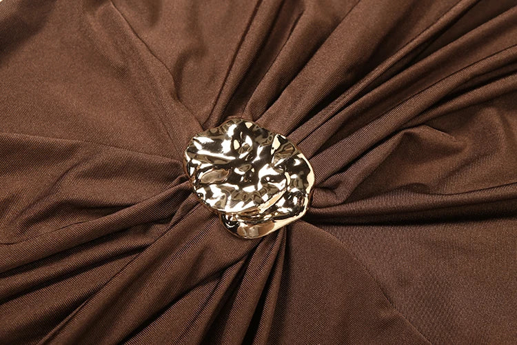 Chic Metal Pin Maxi Dress Women Sexy Split Deep V-Neck Long Sleeve Elegant Simple Evening Skinny Stretch Long Bodycon