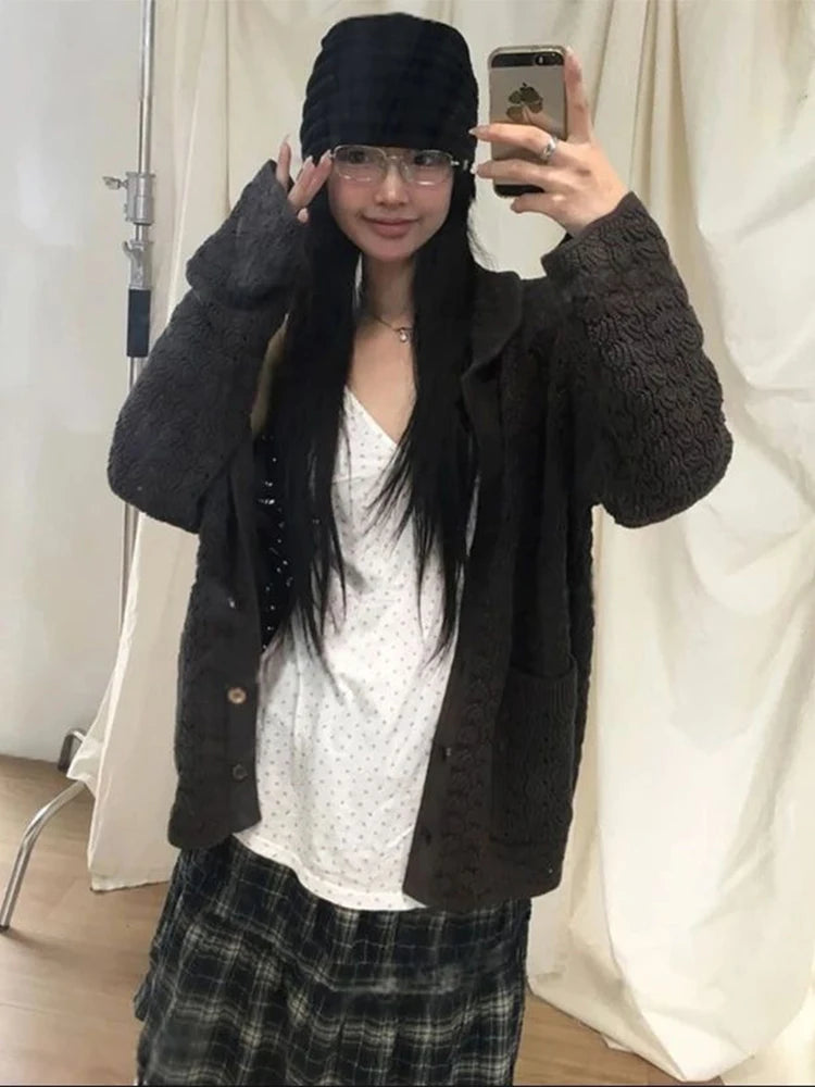 Classic Basics Sweater Women Autumn Casuals Long Sleeve Button Pocket Elastic Streewear Daily Simple Trend Coat