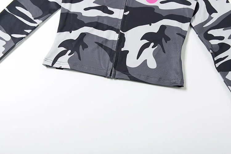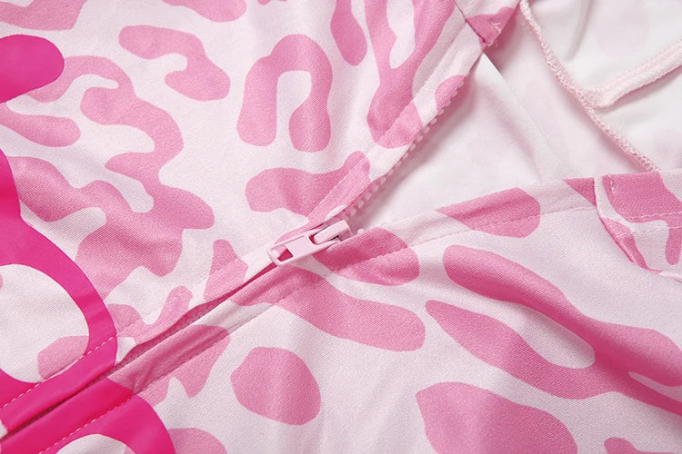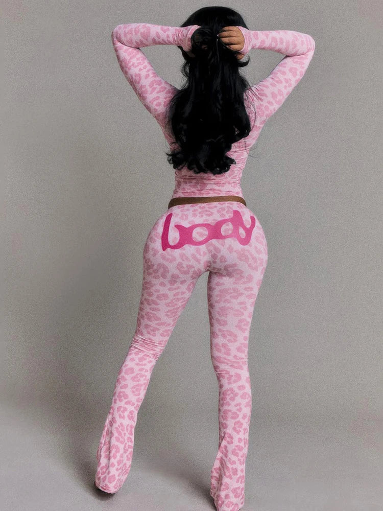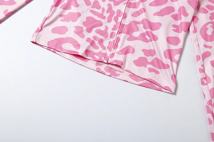 Classic Panelled Leopard Women 2 Piece Sets Hipster Letter Printed Zip-up Tops+Skinny Elastic Trousers Female Streetwear