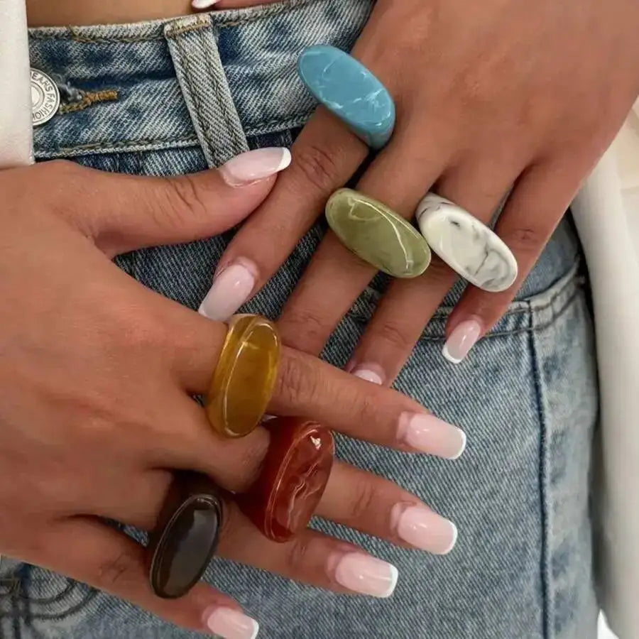 Colorful Gradient Textured Resin Geometric Square Ring, Irregular Creative Charm Accessory, Daily Hand Jewelry