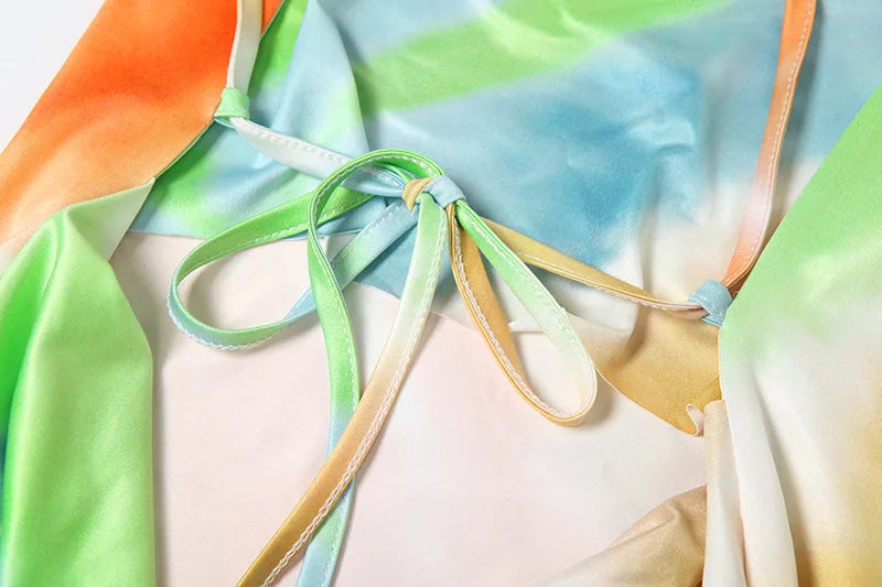Colorful Print Cowl Neck Backless Fishtail Maxi Dress Sexy Elegant Party Dresses for Woman Clothing