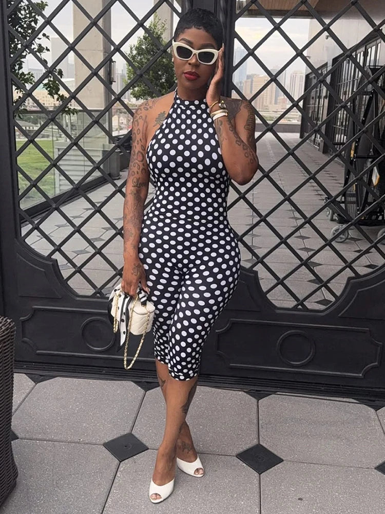 Colorful Print Romper Women Halter Bandage Summer Sexy Hipster Backless Activity Workout Fit Tight Stretch Playsuits