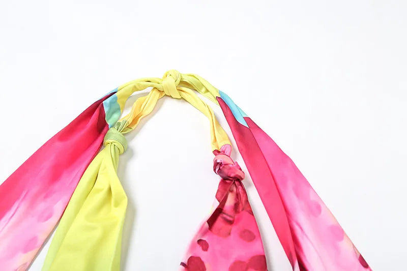 Colorful Print Sexy 2 Piece Set Open Back Halter Top and Split Long Skirts Woman Vacation Outfits