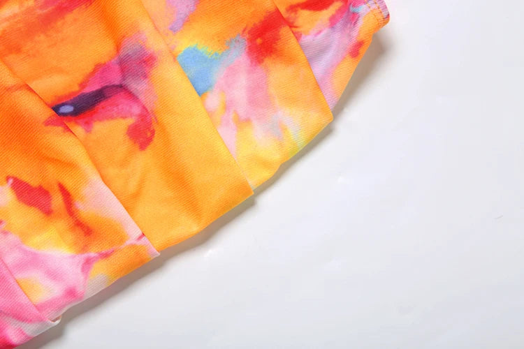 Colorful Print Strapless Dress Women Thin Irregular Multilayer Mesh Side Knot Hollow Beach Vacation Club Mini Bodycon