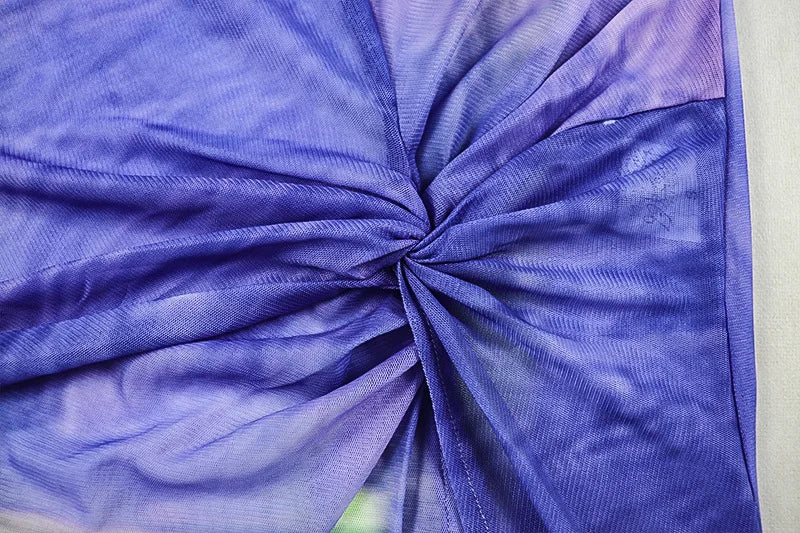 Contrast Patchwork Mesh Dress Women o-Neck Flared Sleeve Ruched Kink High Splits Hem Midnight Sexy Fashion Long Dress