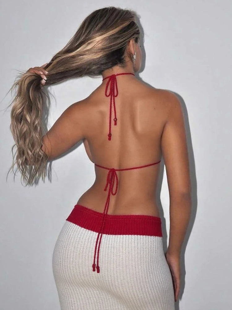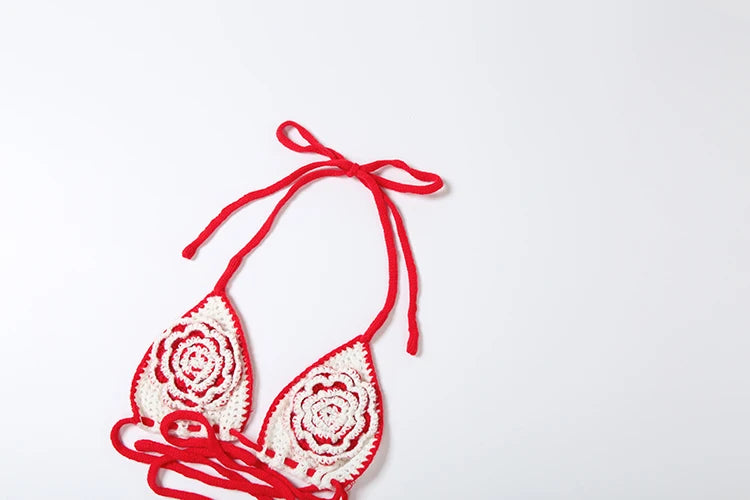 Crochet 2 Piece Set Women Beach Vacation Flower Bra Tops+Patchwork Long Skirts Matching Vacation Midnight Clubwear