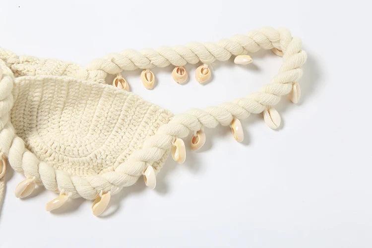 Crochet Applique Patchwork 2 Piece Set Women Sexy Backless Crop Tops+Bandage Hollow Skirts Vacation Beach Party Suits