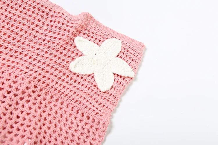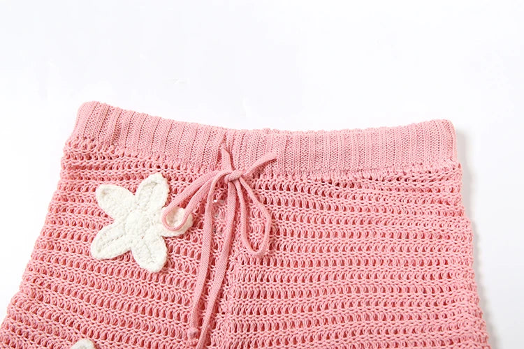 Crochet Women 2 Piece Set Sexy Applique Hollow Beach Back Bandage Strapless Tops+Shorts Midnight Vacation Clubwear