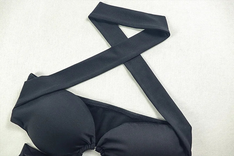 Cross Halter Dress Women Sexy Waistless Backless Metal Rings Folds High Slits Midnight Sexy Coquette Trend Vestidos