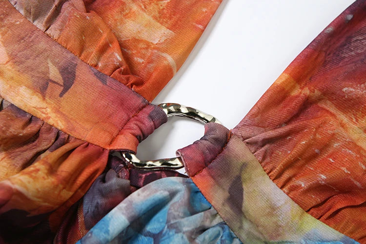 Cross Metal Rings Dress Women Y2K Coquette Sexy Backless Tassel Halter Pleated Waistless Midnight Club Party Bodycon