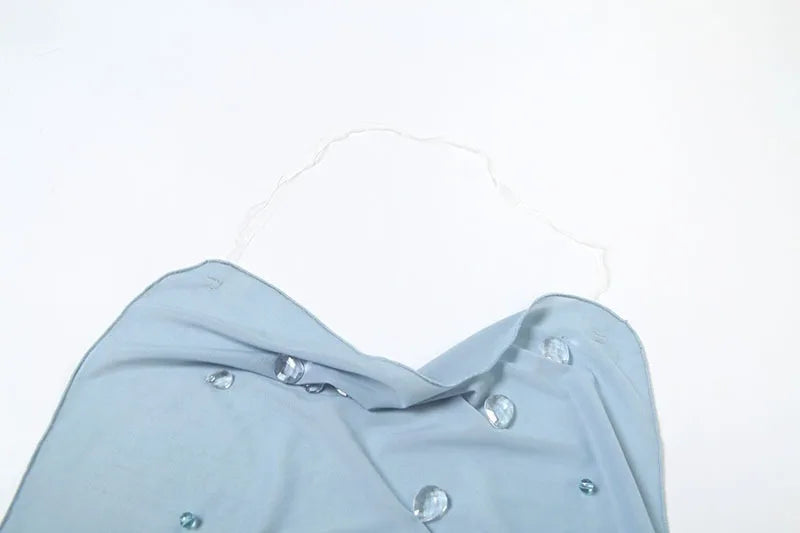 Crystal Mesh See Through Sexy Dresses for Summer 2025 Open Back Halter Mini Dress Club Wear Outfits for Women