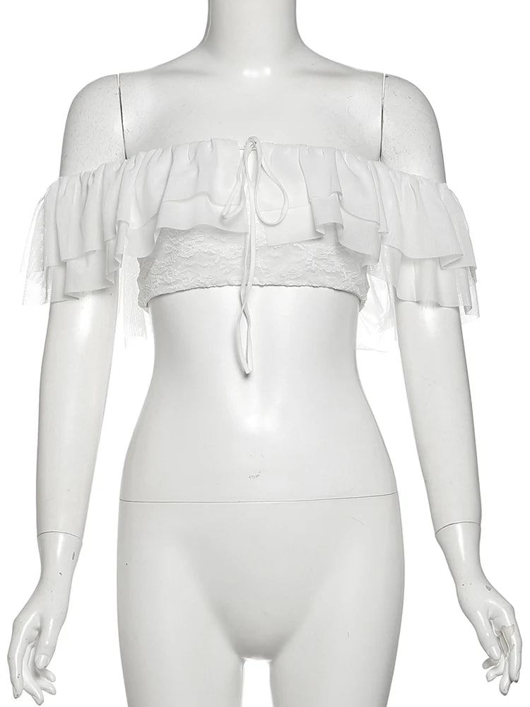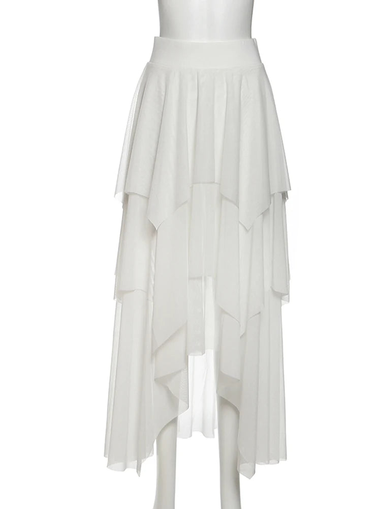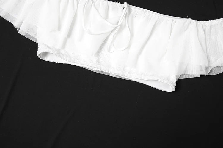 Elegant 2Piece Set Women Tierred Patchwork Bandage One Shoulder Tops+Irregular Hem Ruffles Skirts Vacation Chic Suits