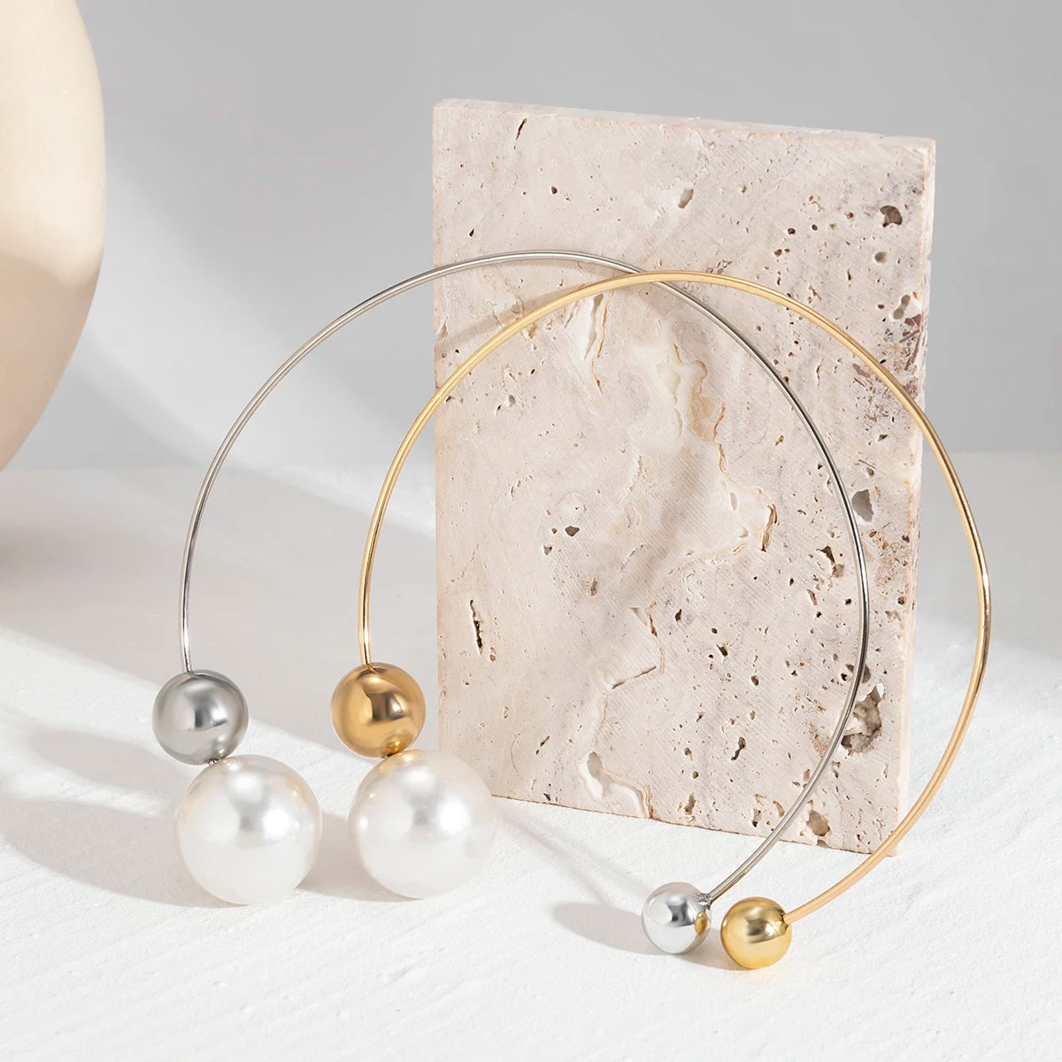 Elegant Goth Big White Imitation Pearl Choker Necklace for Women Ball Pendant Clavicle Chain Wedding Jewelry Collares 2022 New