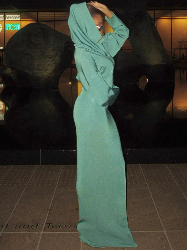 Elegant Sexy Hooded Dress Women Autumn Trend Full Sleeve New Style Simple Solid Christmas Stretch Skinny Maxi Bodycon