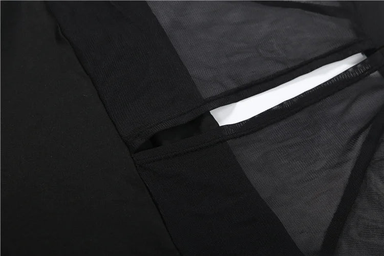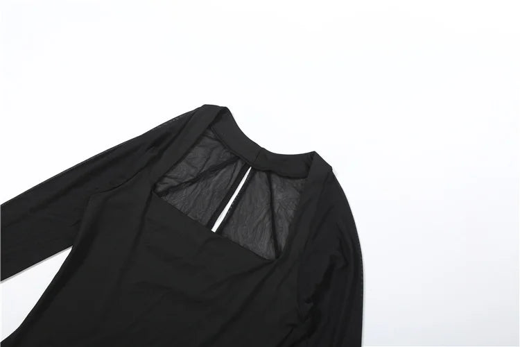 Elegant Side Slit Maxi Dress Women Low-Neck Full Sleeve Patchwork Mesh Banquet Autumn Winter Trend Prom Party Vestidos