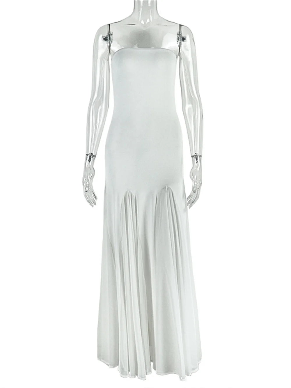 Elegant Strapless Dress Women Solid Y2K Patchwork Mesh Hem Birthday Party Evening Banquet Sexy Vacation Chic Bodycon