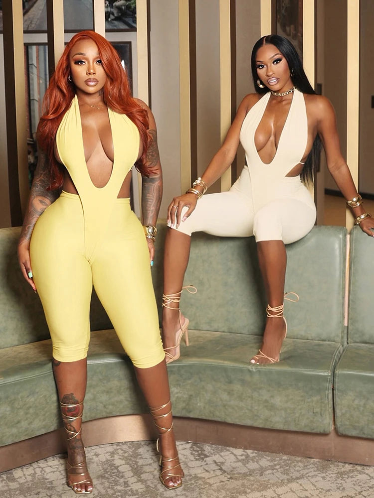 Fake 2 Piece Sexy Romper Women Y2K Sleeveless Backless Patchwork Summer Street Halter Skinny Hollow Activity Playsuit