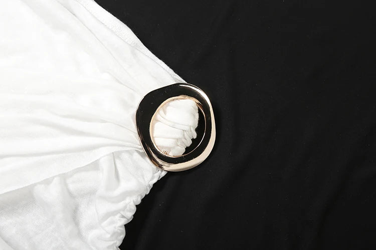 Fashion 3Piece Set Woman Solid Hooded Scarf+One Shoulder Irregular Top+Metal Ring Wrap Hip Mini Skirt High Street Outfits