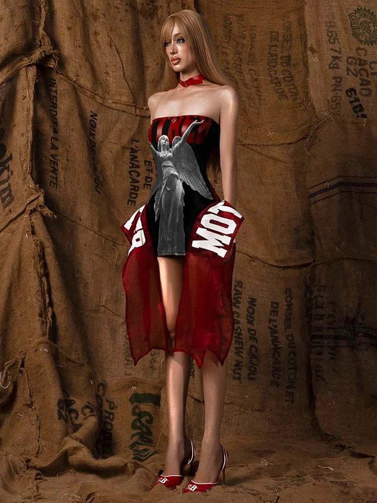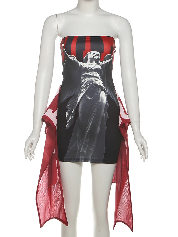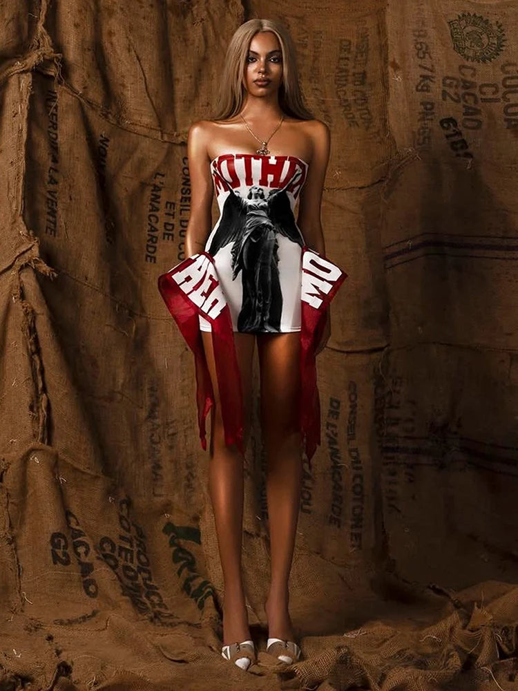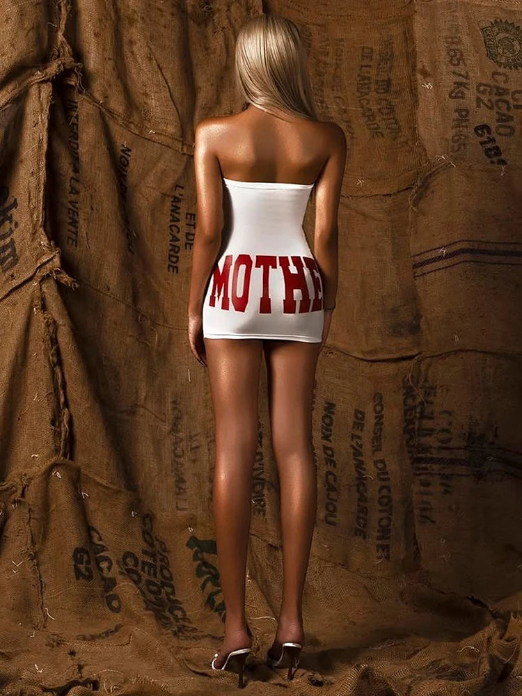 Fashion Print Mini Dress Women Sexy Off Shoulder Sleeveless Backless Skinny Peach Hip Hot Girls Wild Style Outfits