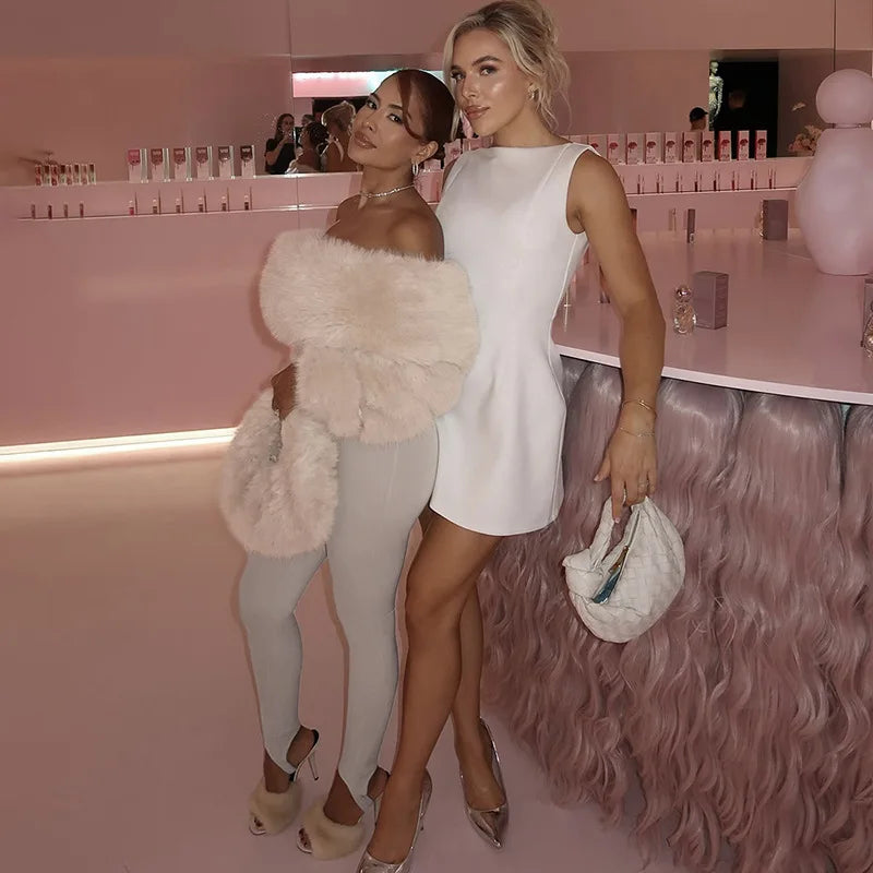 Faux Fur Patchwork Off Shoulder Long Sleeve Jumpsuits Sexy Winter Clothing for Woman One Pieces Club Outfits