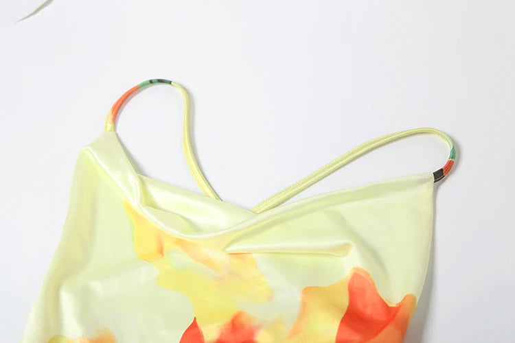 Floral Print Sexy Lace-Up Backless Dress Women Ruched Swing Collar Sleeveless Robe Vacation Trend Beach Party Outfits