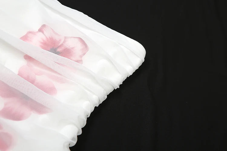 Flower Print Dress Patchwork Puffy Hem Sleeveless Folds Street Midnight Summer Trend Sweet Chic Strapless Bodycon