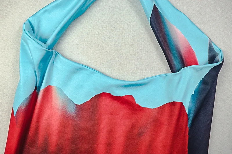 Flower Print Long Dress Women Summer Trend Halter Swing Collar Backless Sleeveless Vacation Fashion Skinny Vestidos