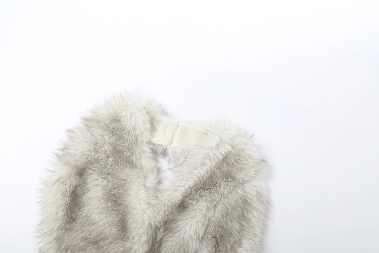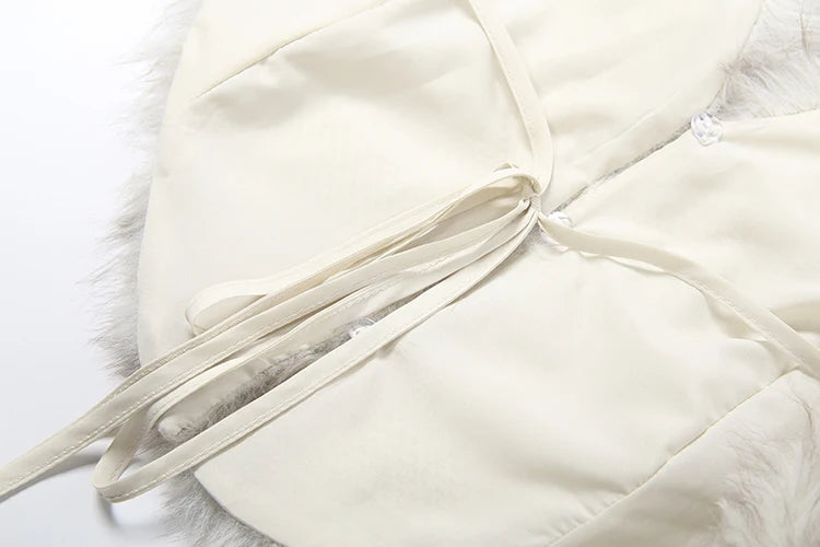 Fluffy Sexy 2-Piece Set Women Halter Bandage Backless v-Neck Vest+Zipper Short Street Hottie Midnight Matching Wild Suit